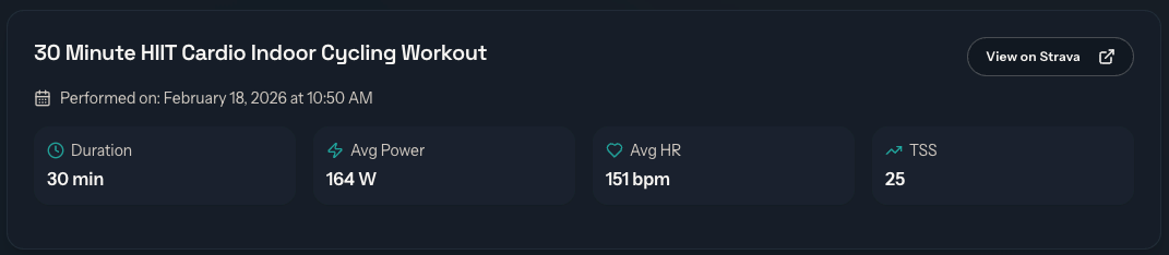 - a structured workout plan (intervals, power targets, duration)