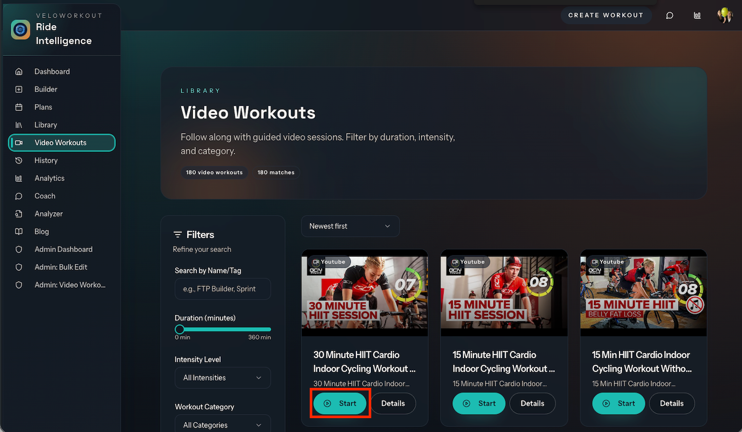 That is what VeloWorkout's new Video Workouts feature delivers.