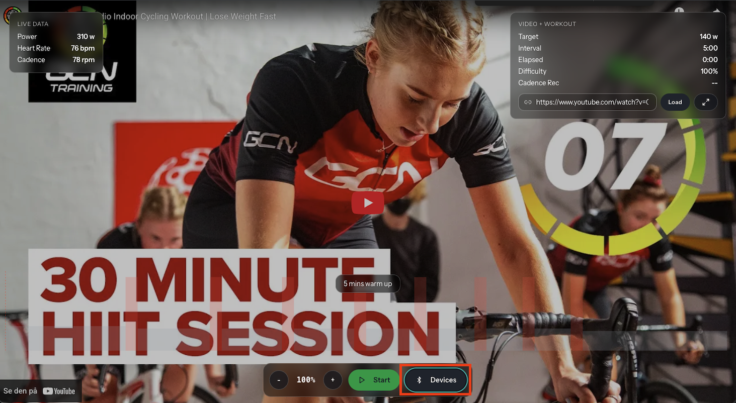 - Connect your smart trainer and heart rate monitor